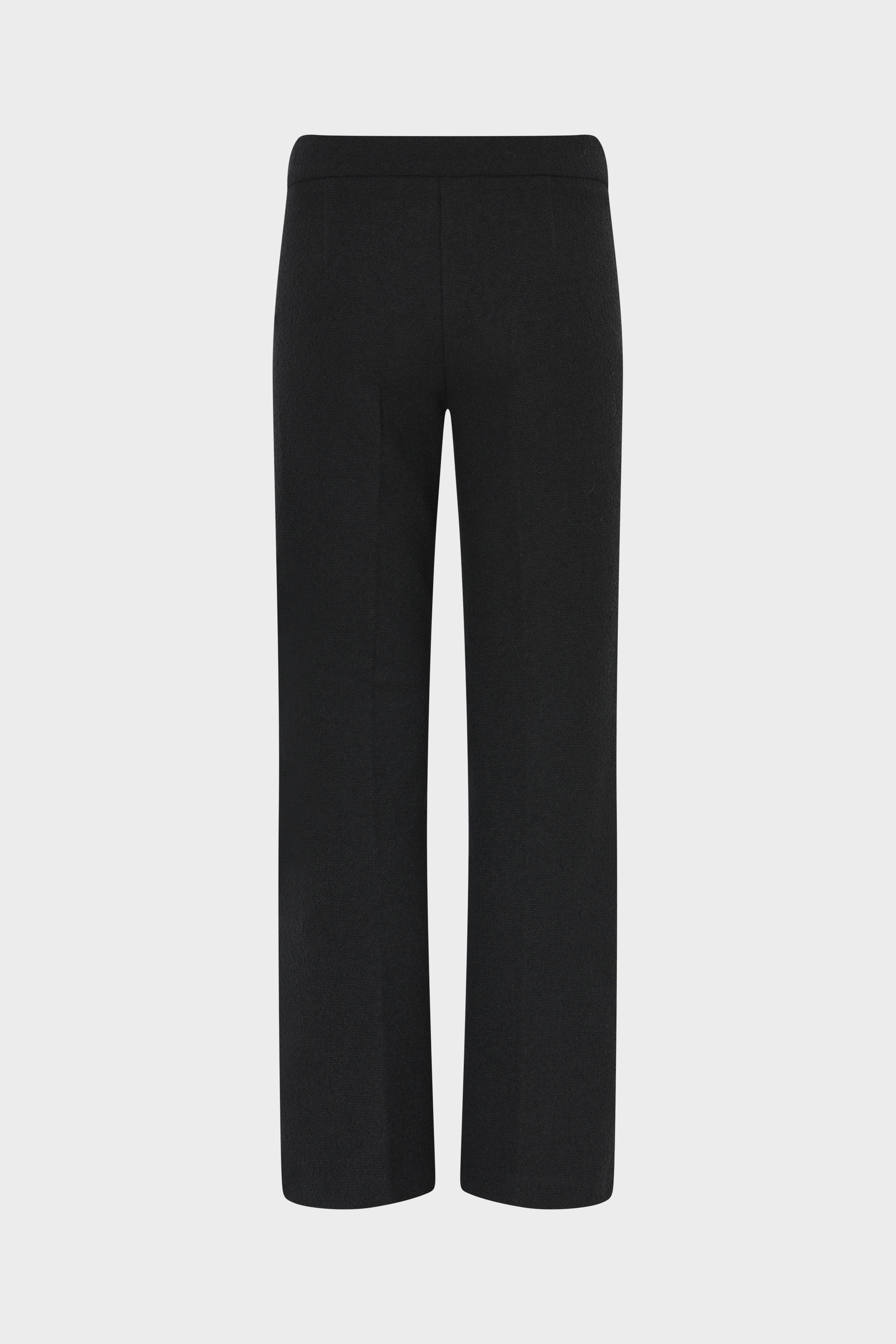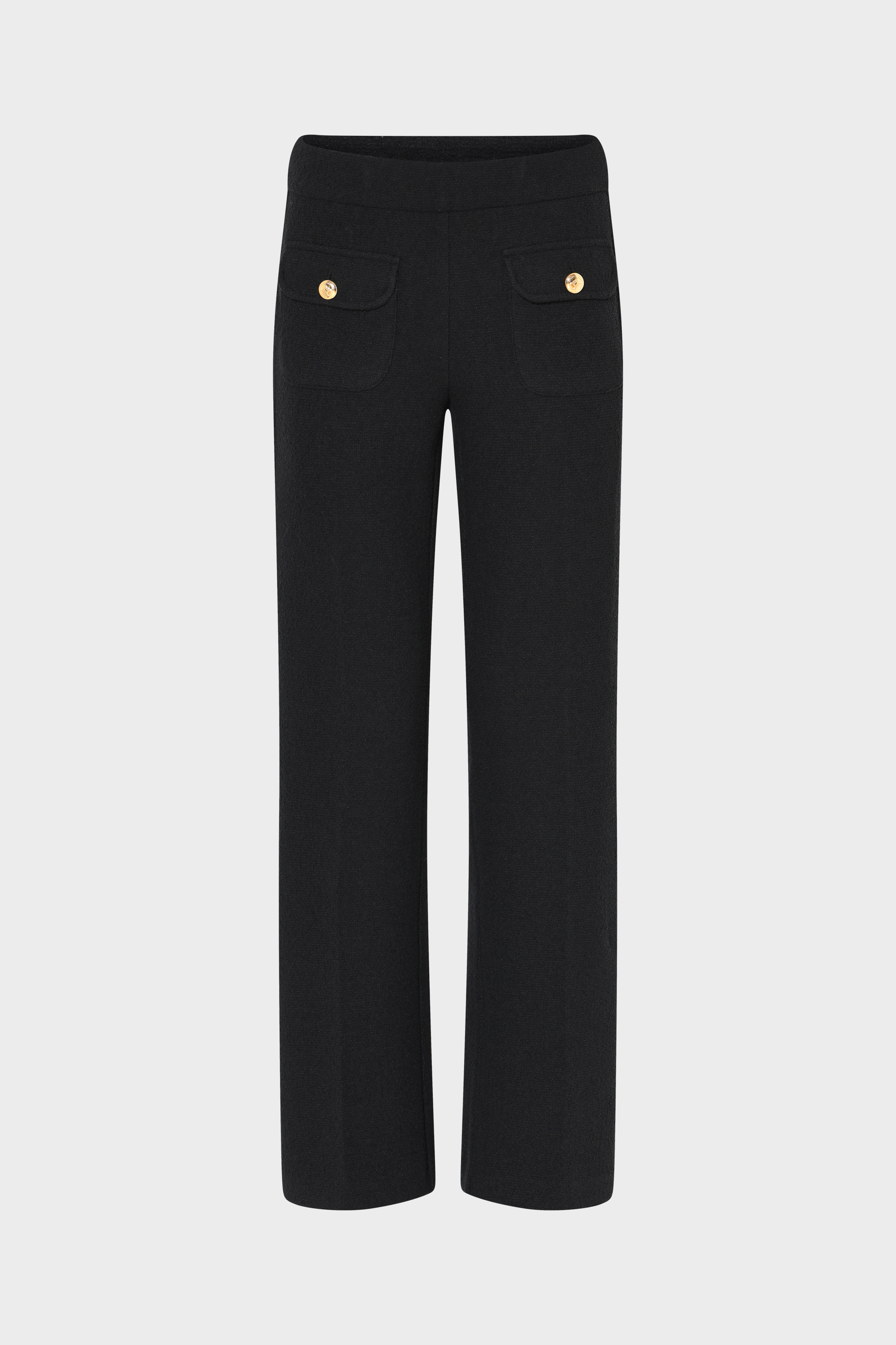 Denne elegante boucle buks fra Cambio Faith er et must-have for enhver garderobe. Med sit brede, rette ben og ankel-lange snit er den ideel til både formelle begivenheder og kontordage. Den brede elastik i taljen sikrer en behagelig pasform, mens de dekorative små lommer foran med gyldne knapper tilføjer et strejf af raffinement.