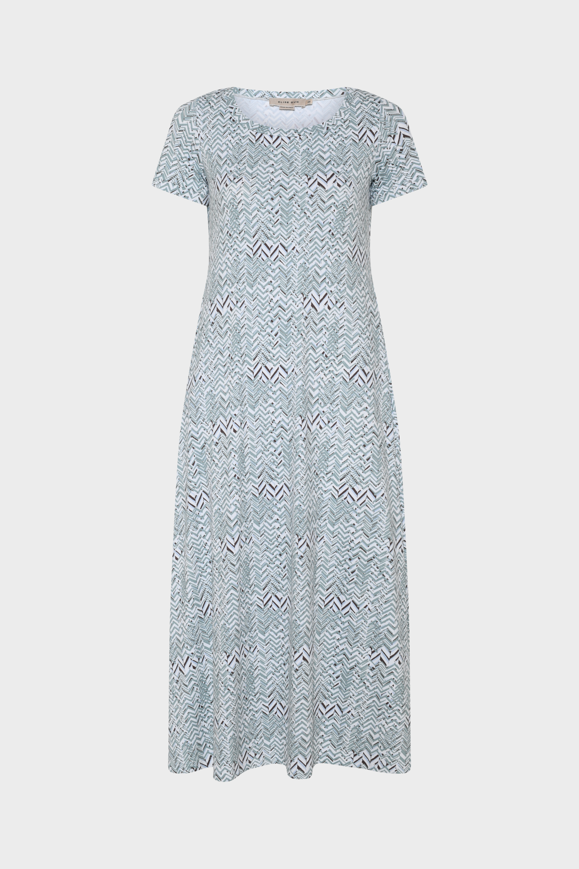 Denne elegante kjole fra Elise Gug er et must-have i enhver garderobe. Kjolen er designet med en feminin A-form, der smukt fremhæver figuren, mens den diskrete rund halsudskæring og de korte ærmer tilføjer et klassisk touch. Denne model er ideel til både hverdagsbrug og særlige lejligheder, og den skjulte lomme i sidesømmen er både praktisk og stilfuld.
