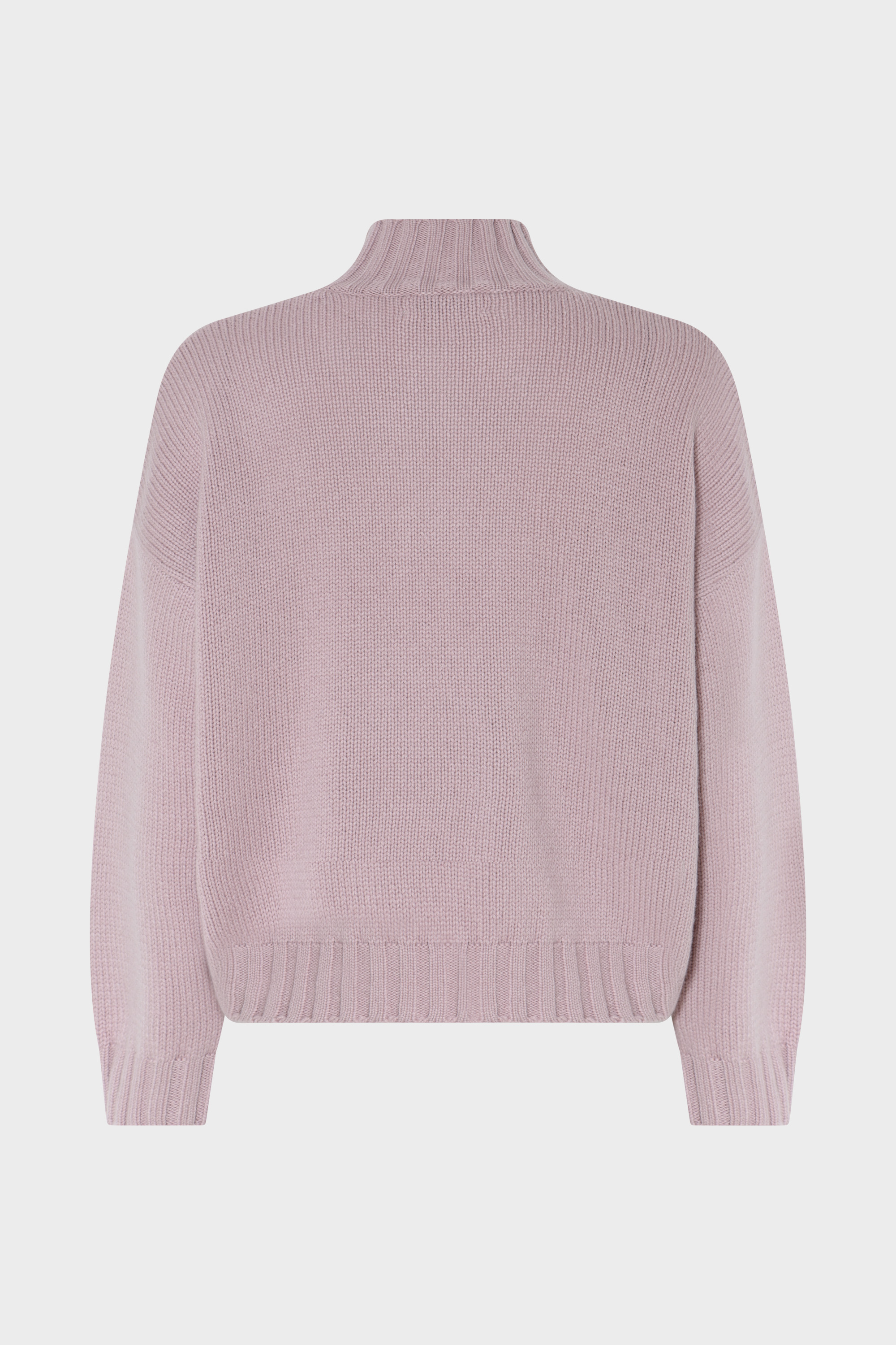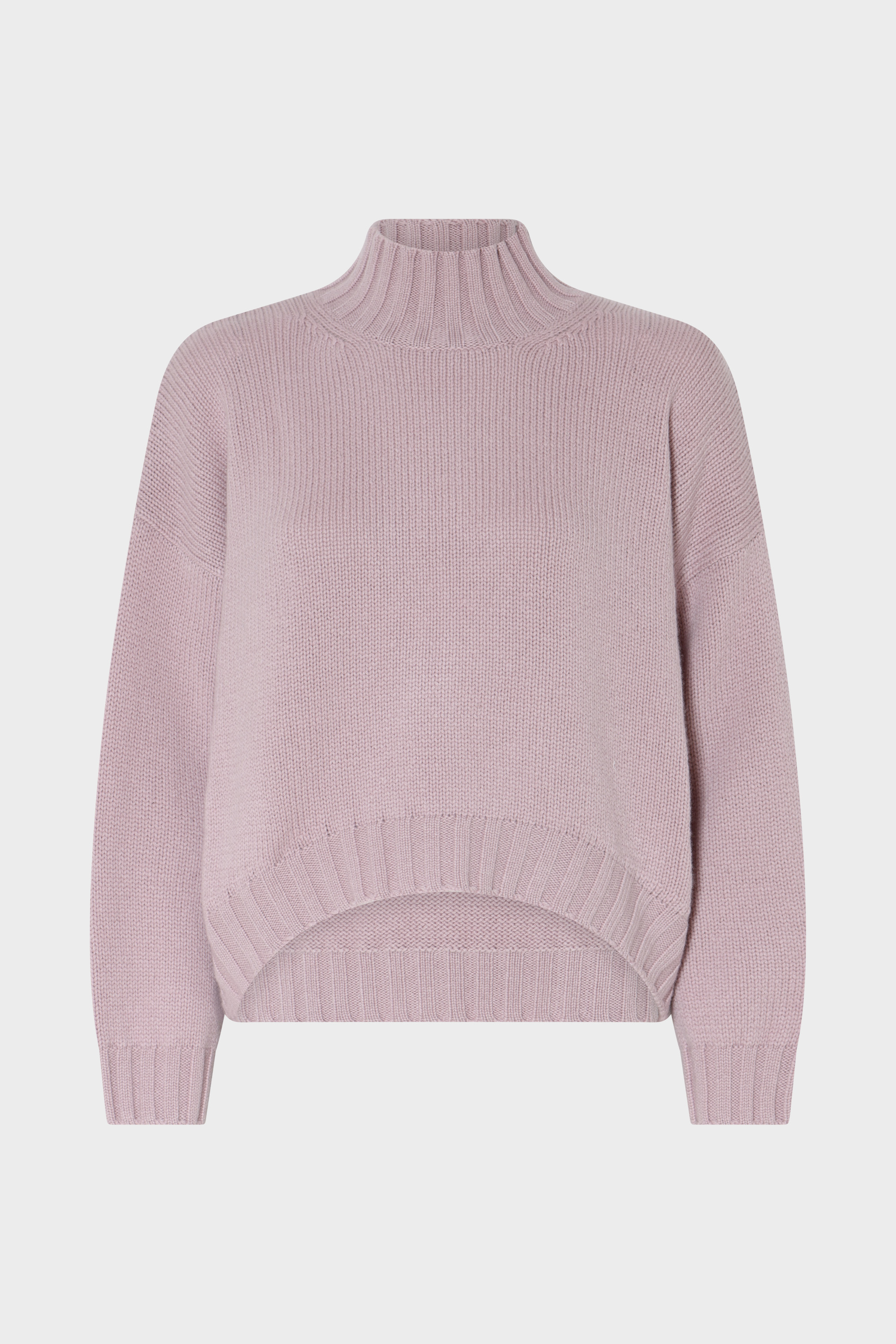 Opdag den luksuriøse fornemmelse af vores chunky cashmere strik fra Warm Me, håndstrikket i Nepal. Denne trøje er perfekt til kølige dage og tilbyder både varme og stil med sin stående krave og smukke støvede rosa farve.