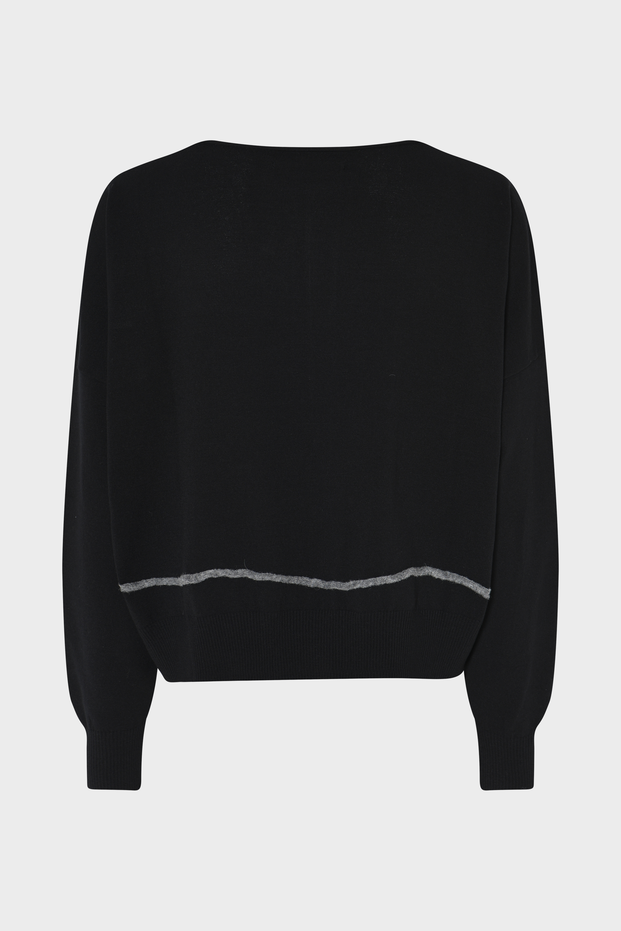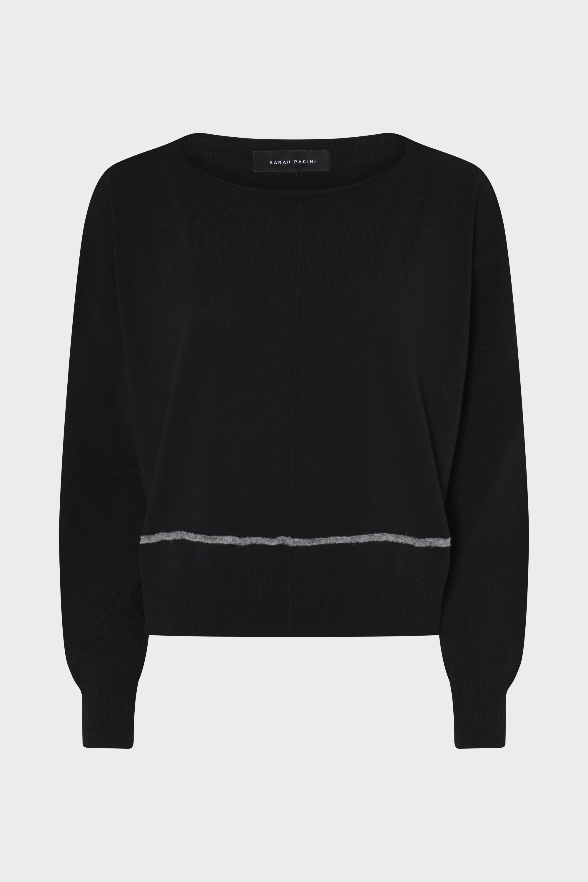 Denne elegante strik fra Sarah Pacini udstråler en tidløs femininitet, velegnet til både hverdag og særlige lejligheder. Den bådformede halsudskæring og de særligt designede ærmer tilføjer et moderne twist, mens den brede ribkant ved håndled og bund sikrer en flatterende pasform. En diskret kontraststribe forneden på blusen tilfører et subtilt, stilfuldt element.