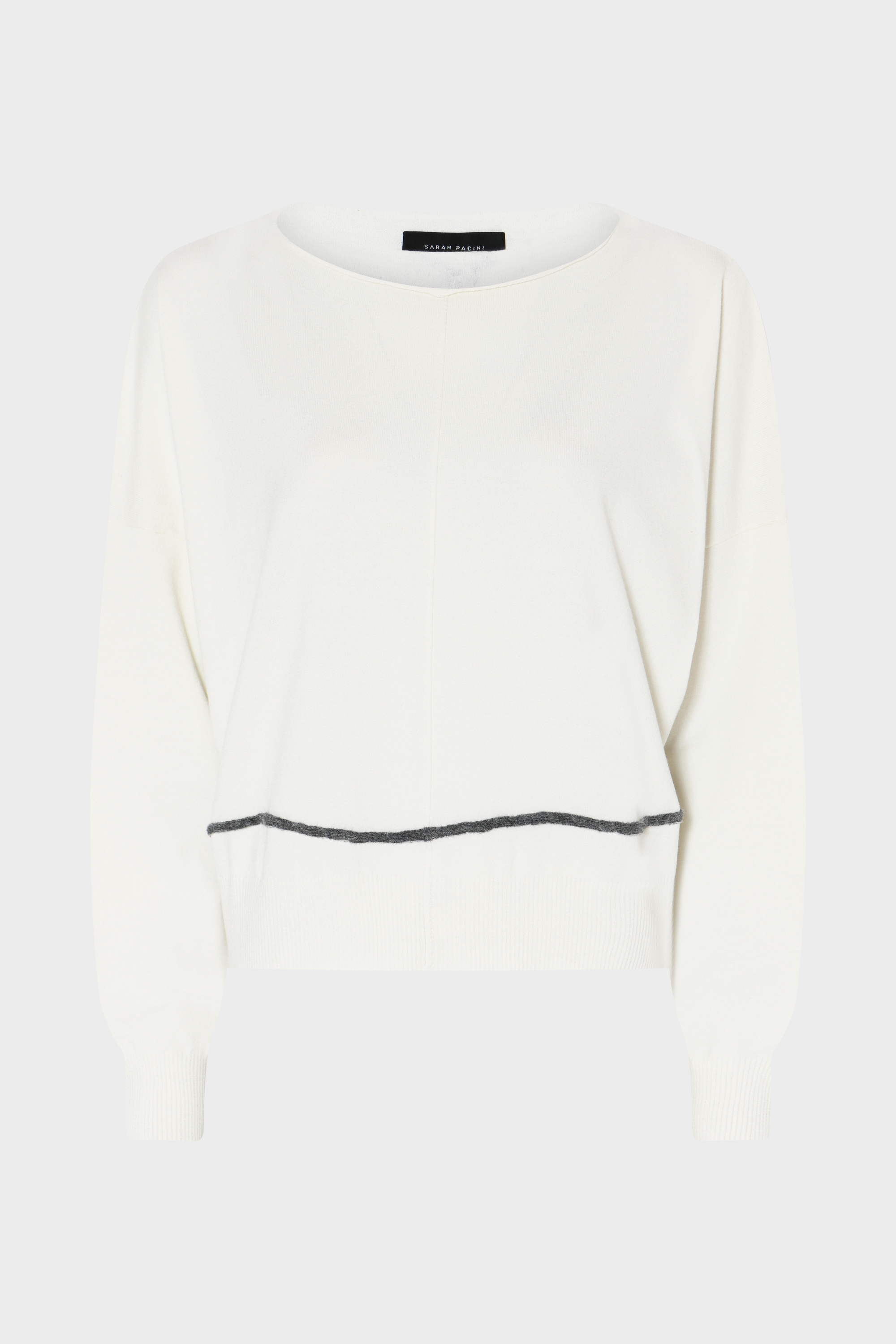Opdag den elegante og afslappede charme i denne strikbluse fra Sarah Pacini, designet med en bred silhuet og en bådformet halsudskæring. Denne strikbluse er ideel til en hverdagschik stil, der kan overgå til aftenbrug med de rette accessories.