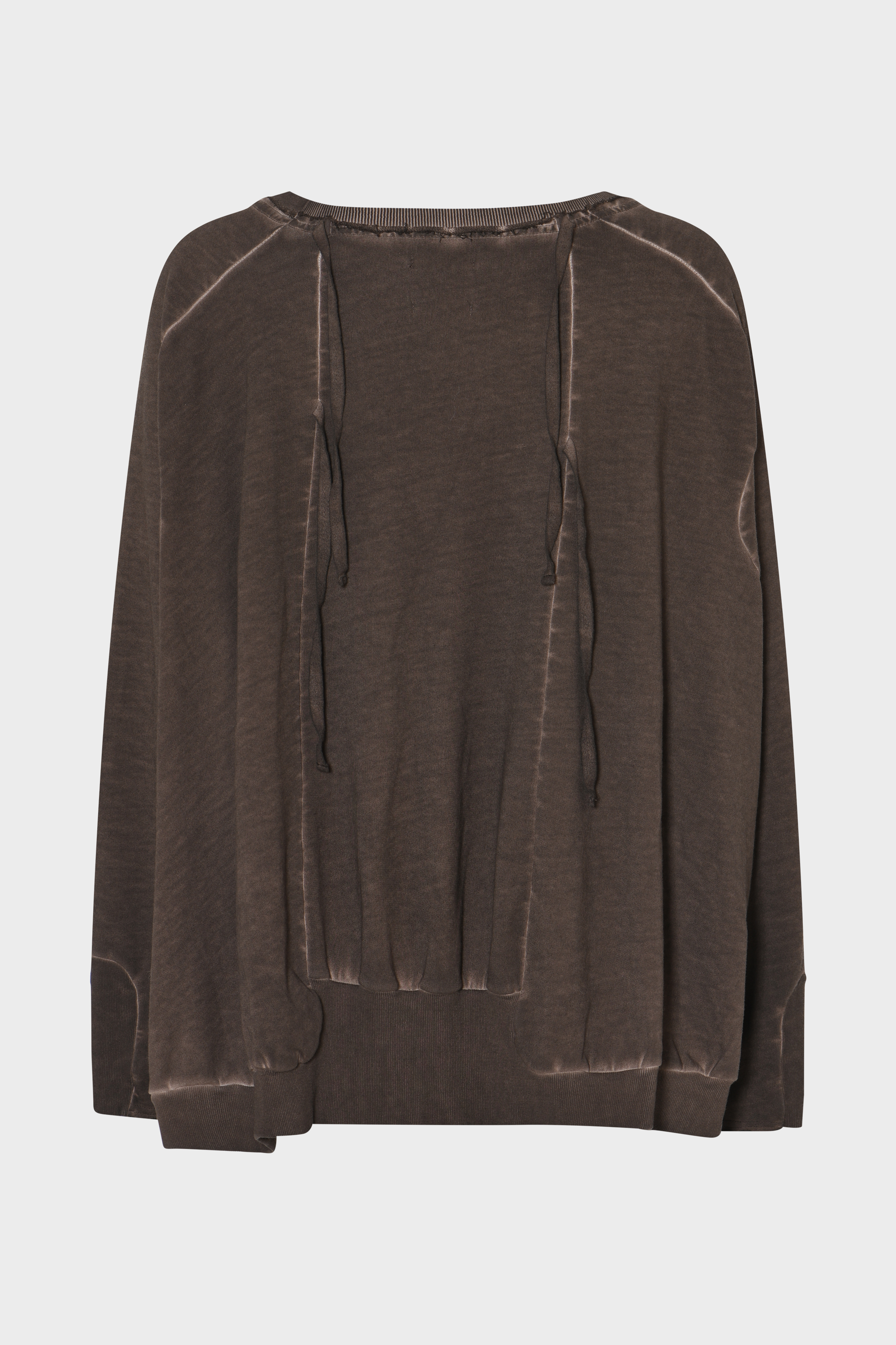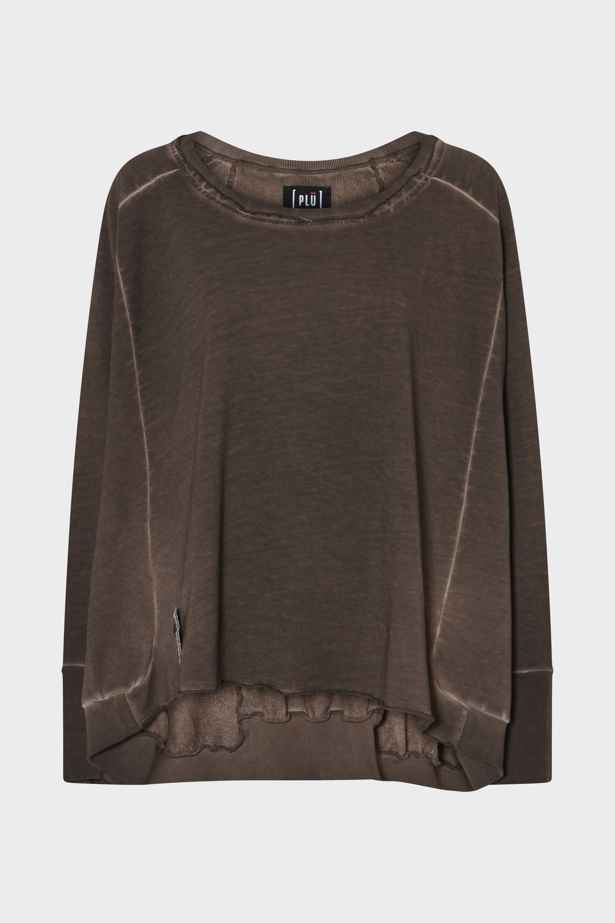 Denne mřrkebrune sport sweatshirt fra PLÜ tilbyder en afslappet og stilfuld tilfřjelse til din garderobe. Med sin bĺdformede halsudskćring og oversized pasform er den ideel til bĺde afslappede hjemmedage og som et behageligt valg til weekendudflugter.