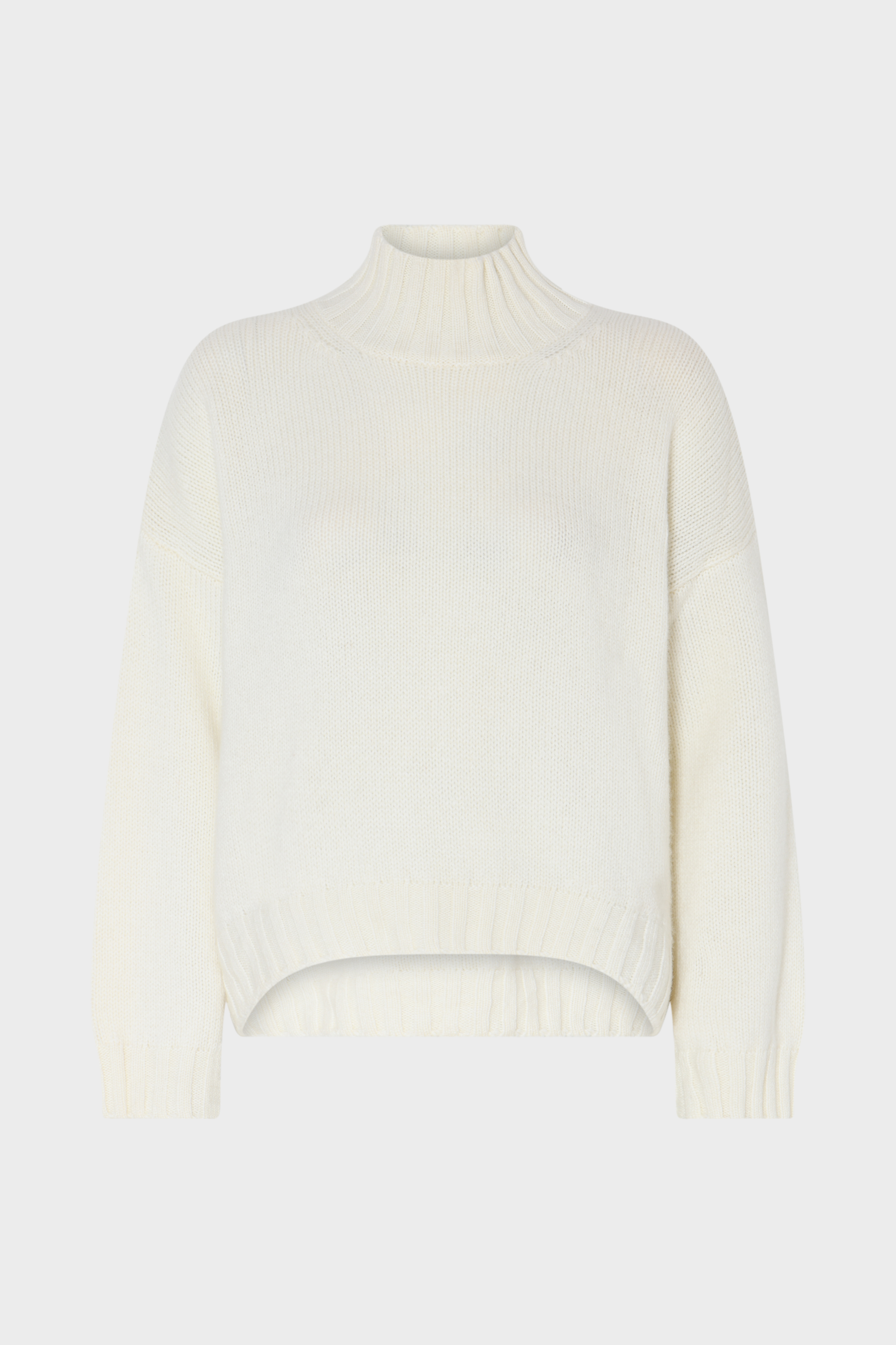 Opdag den elegante og luksuriøse følelse af denne chunky cashmere strik fra Warm Me, som er håndlavet i Nepal. Denne strik er designet med en opretstående skorstenskrave, der tilføjer et moderne touch, mens den bløde cashmere sikrer en behagelig og varm oplevelse igennem de køligere måneder. Perfekt til både en afslappet dag derhjemme og til kontoret.