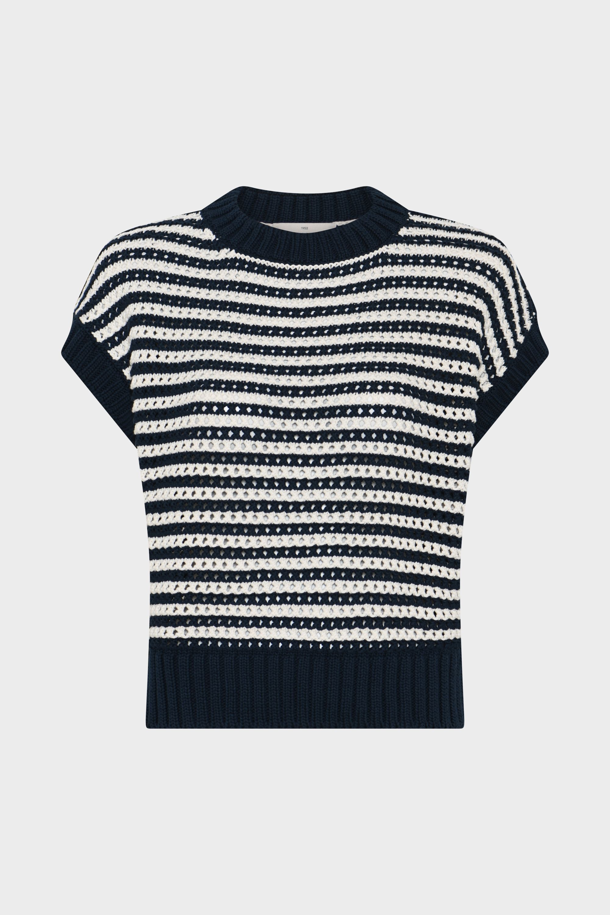 • Den er udformet med en klassisk rund halsudskæring og brede ribkanter ved både hals, ærmegab og forneden.