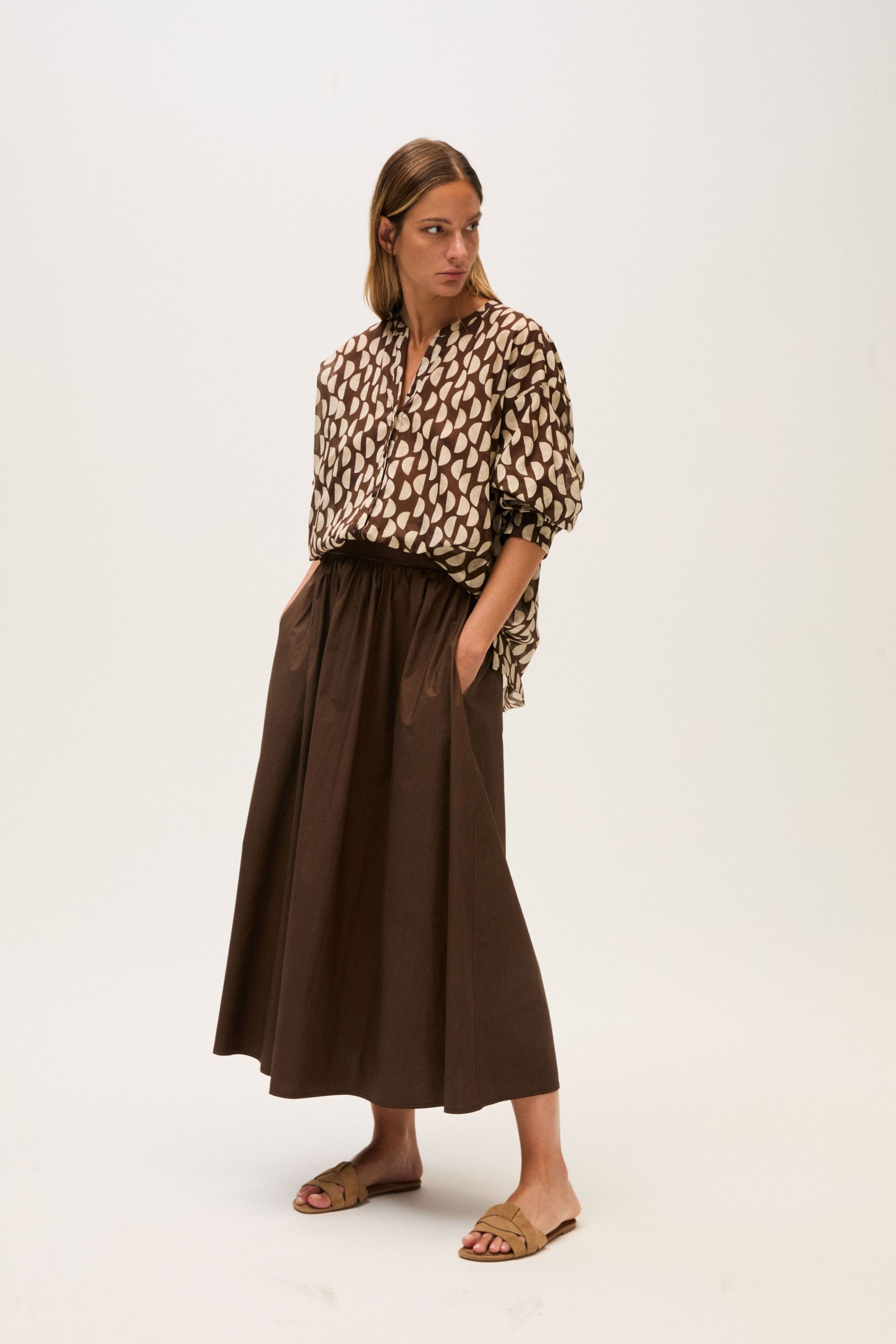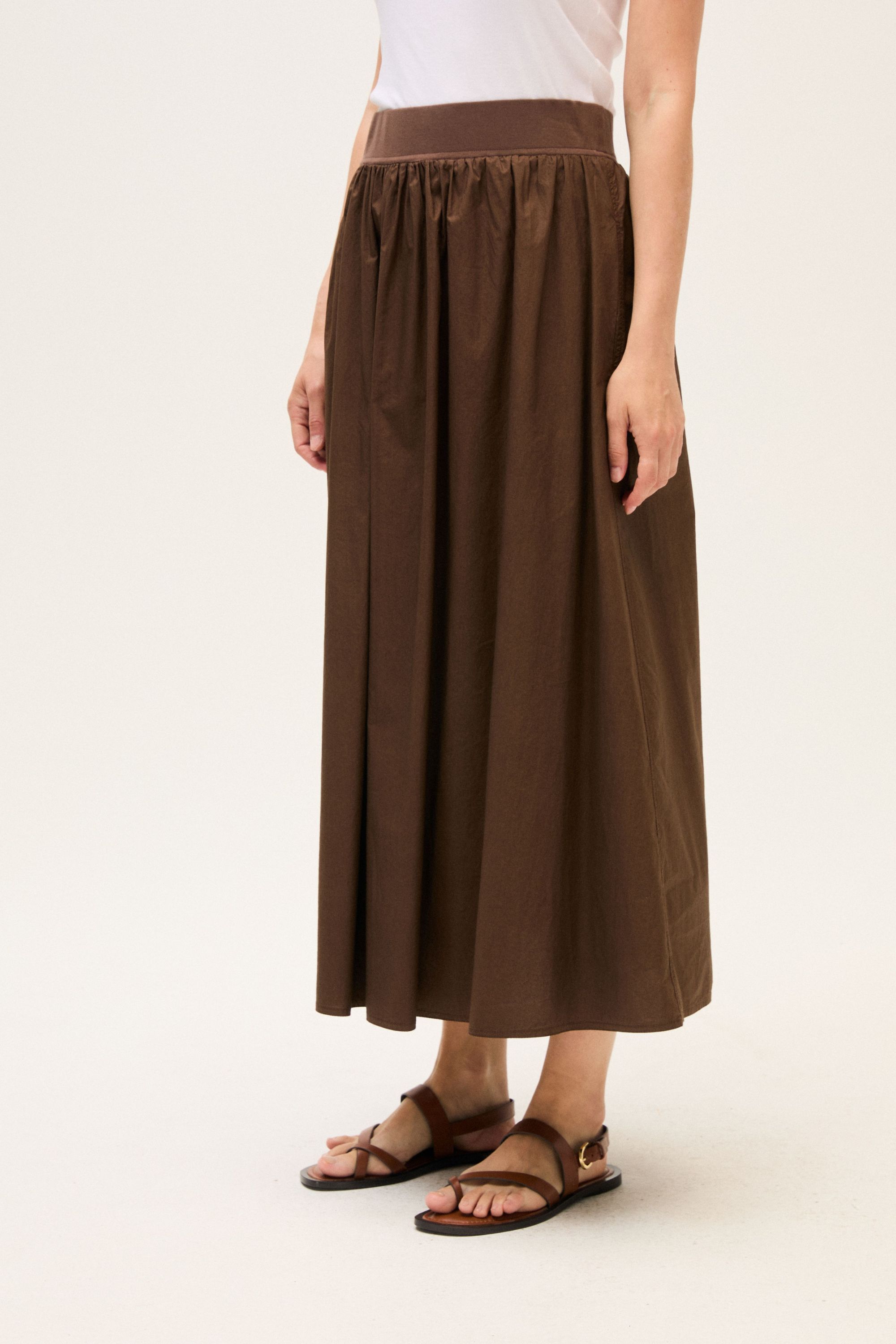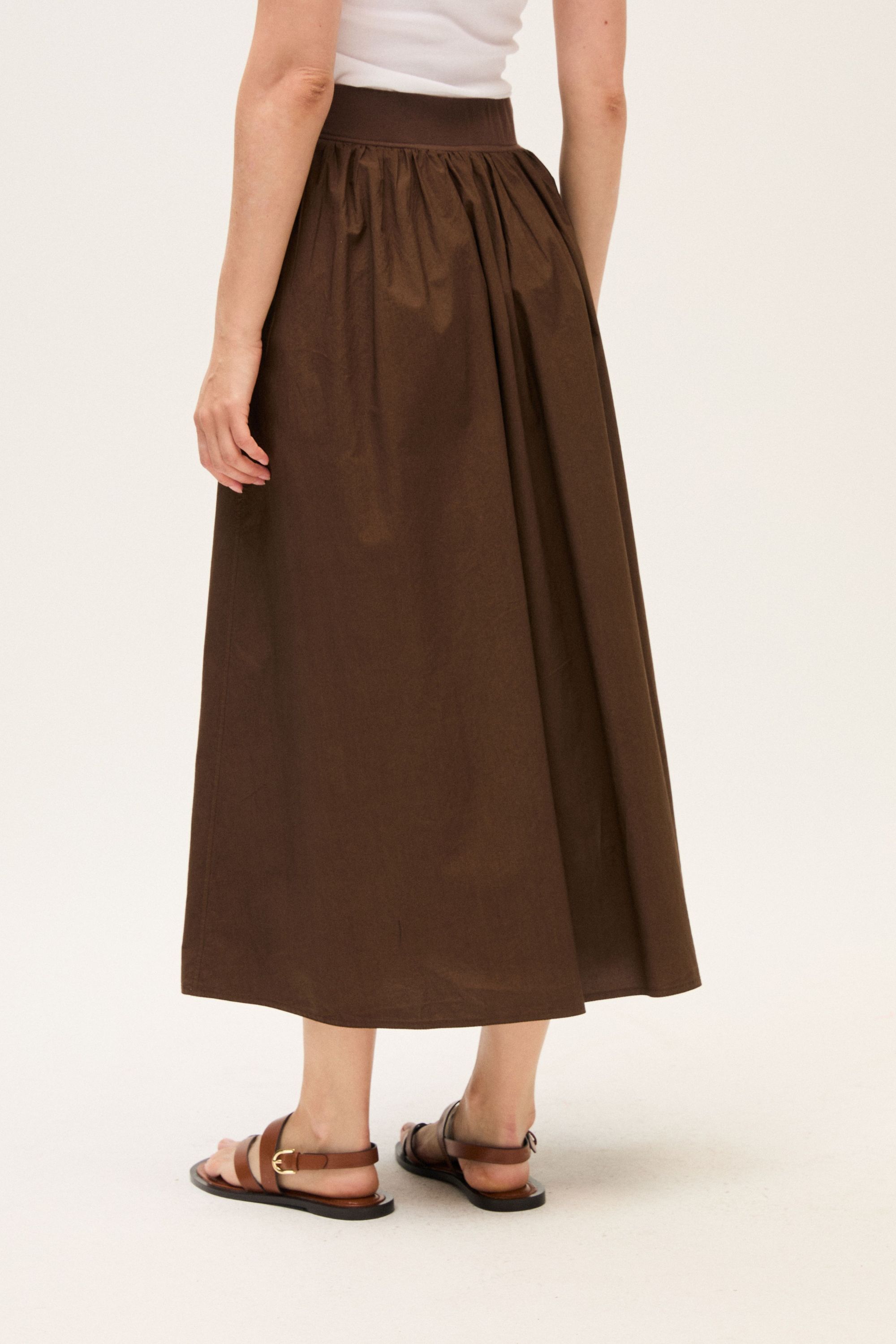 Modellen har bred elastik i taljen, samt skjulte lommer i sidesømmene.