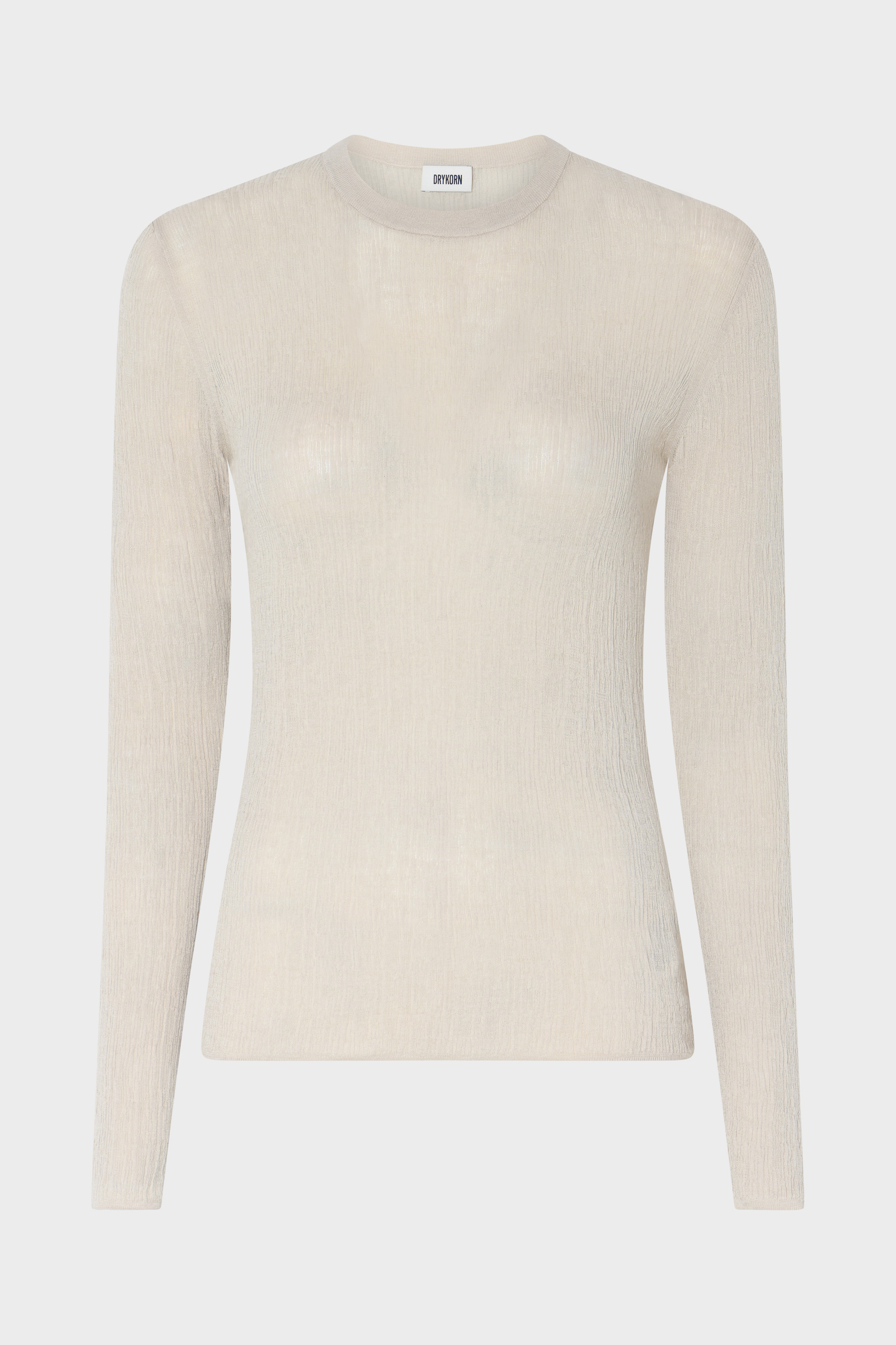 Opdag denne elegante og feminine T-shirt fra Drykorn, der er uundværlig i enhver garderobe. Med sin rene udskæring og strukturerede vævning tilføjer den et touch af raffinement, der er ideelt under en jakke eller cardigan til både hverdag og kontorbrug.