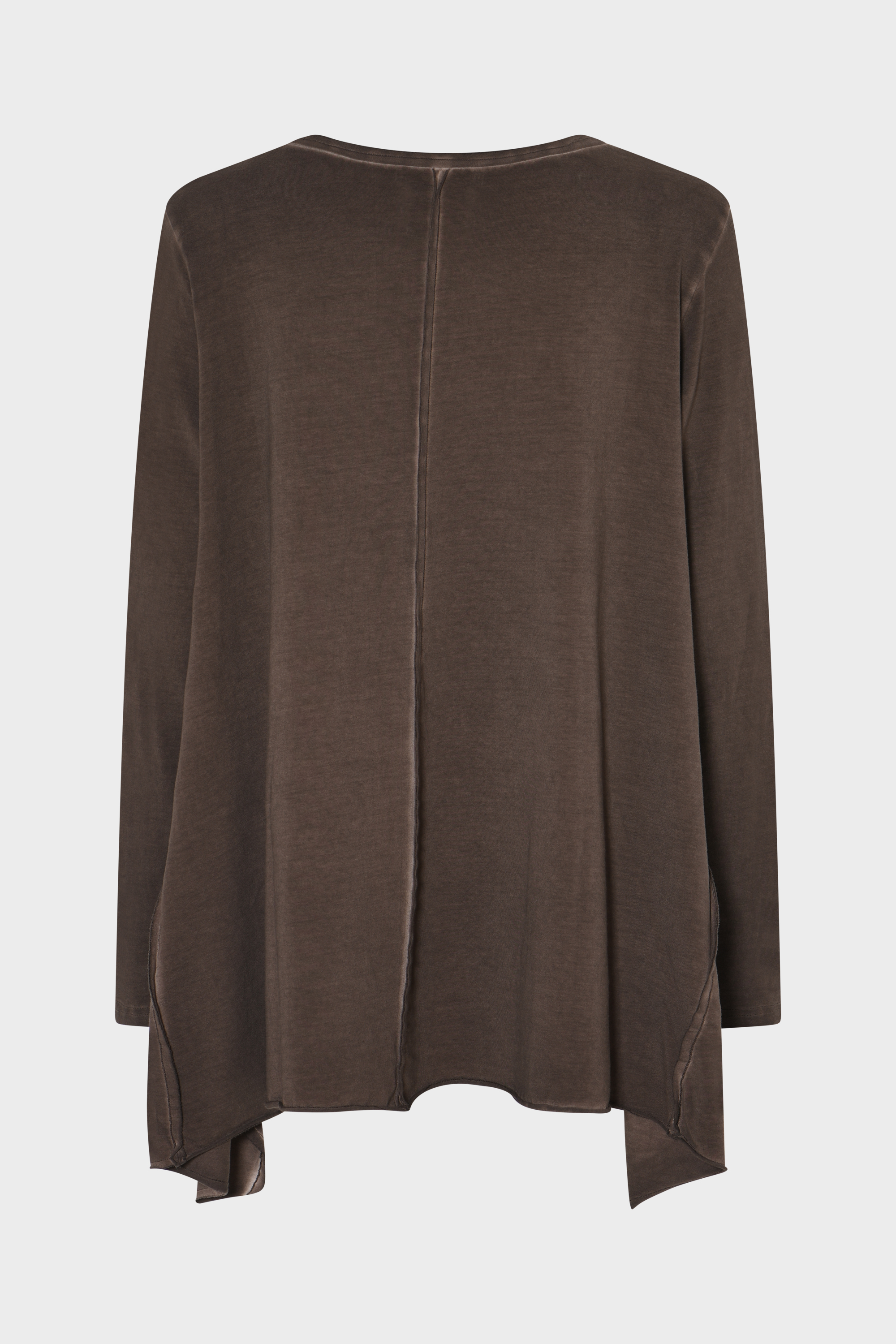 • Rund bådformet halsudskæring og slankt påsat ærme fremhæver den minimalistiske stil.