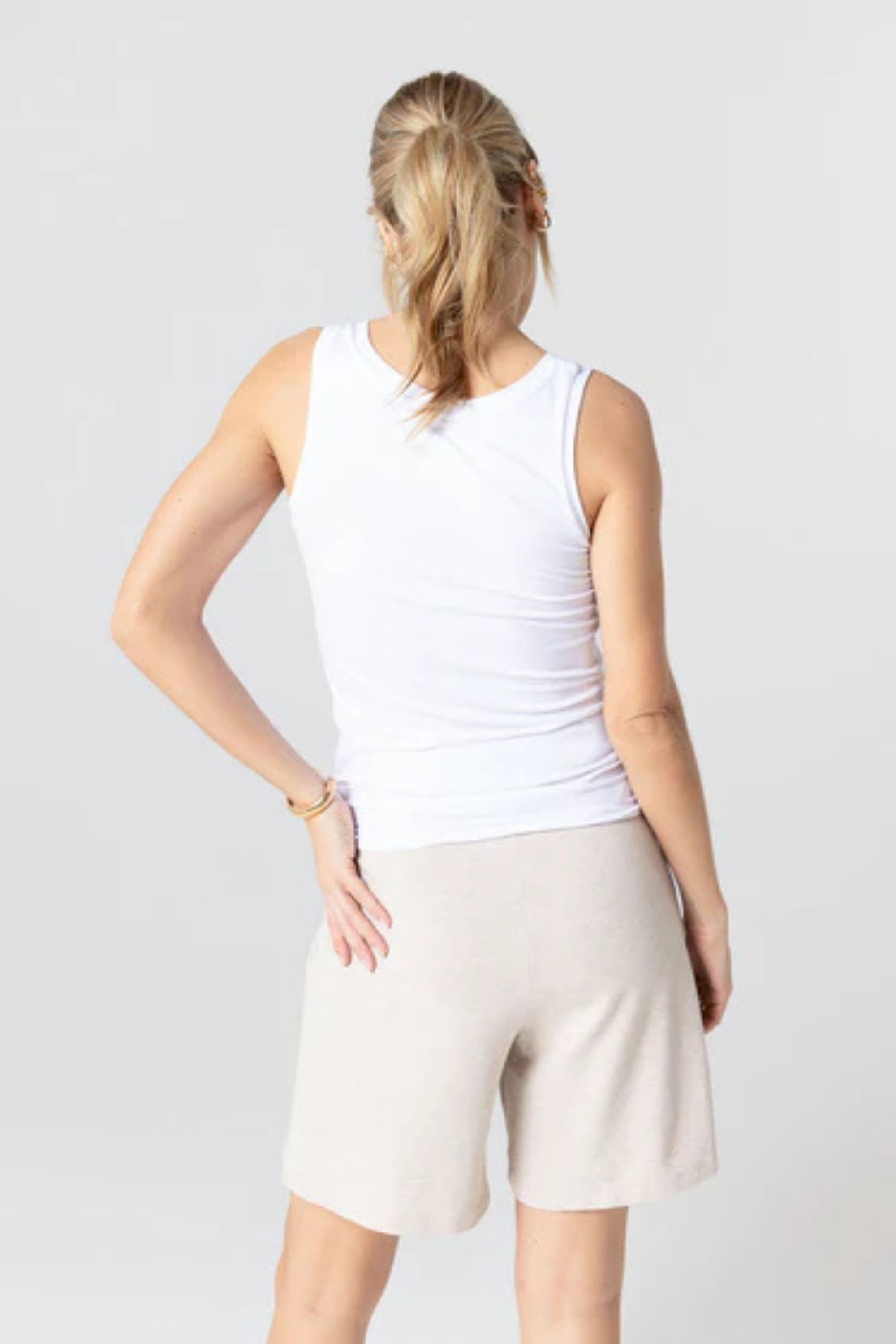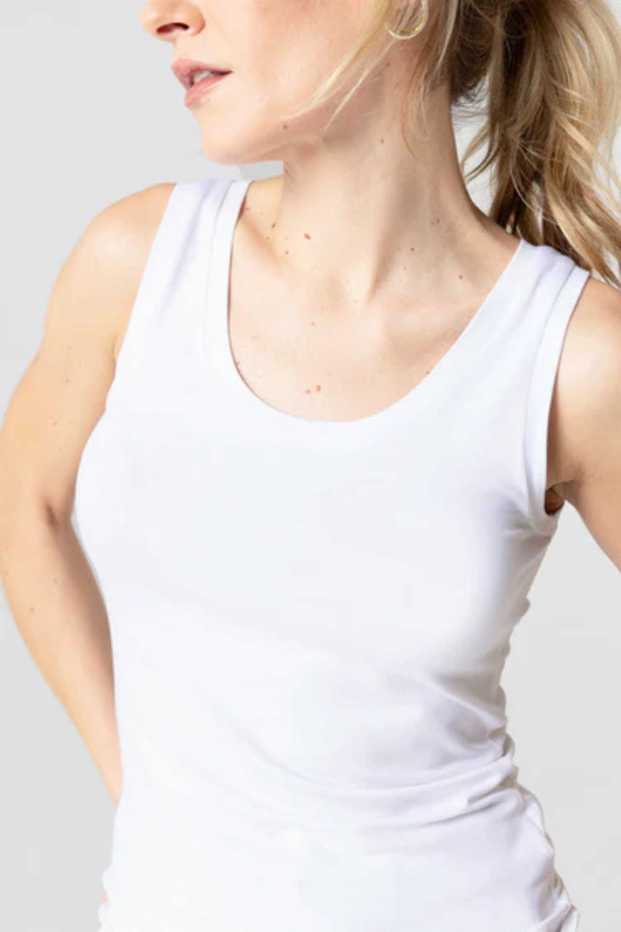 • Slank silhuet med dobbelt kant ved ærmegab og halsudskæring.