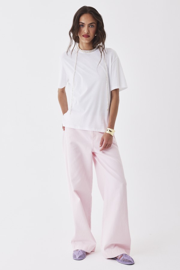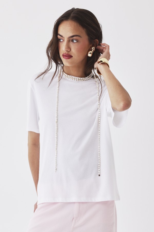 Denne T-shirt er et alsidigt stykke tøj, der kan bruges både til afslappede dage og når du ønsker et enkelt, men chic look. Matcher smukt med lag-på-lag outfits.