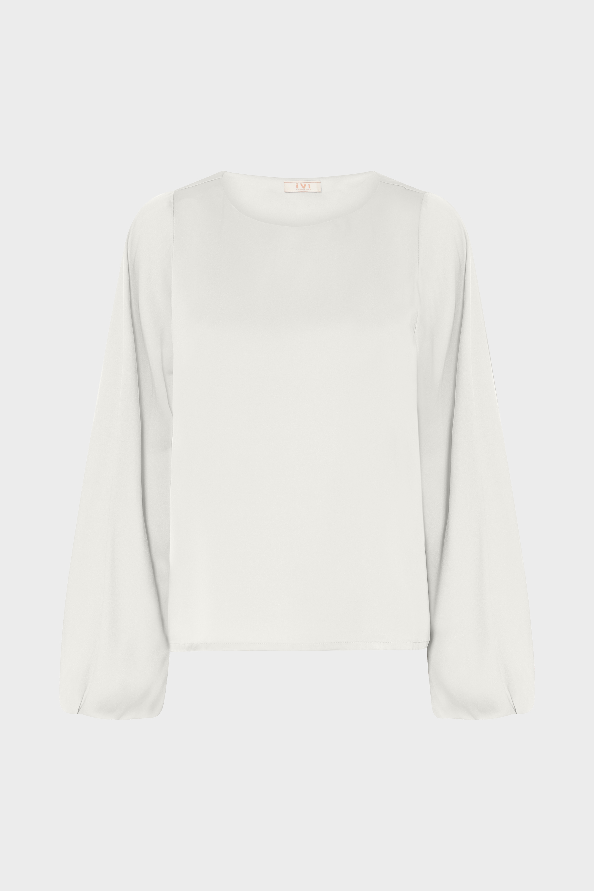 Denne elegante creme-farvede silkeskjorte fra IVI er designet til at forfine din garderobe med dens tidløse skønhed og komfort. Den bådformede halsudskæring tilføjer et strejf af raffinement, mens den langærmede design med skjult elastik giver en alsidig pasform, der kan tilpasses efter ønske.