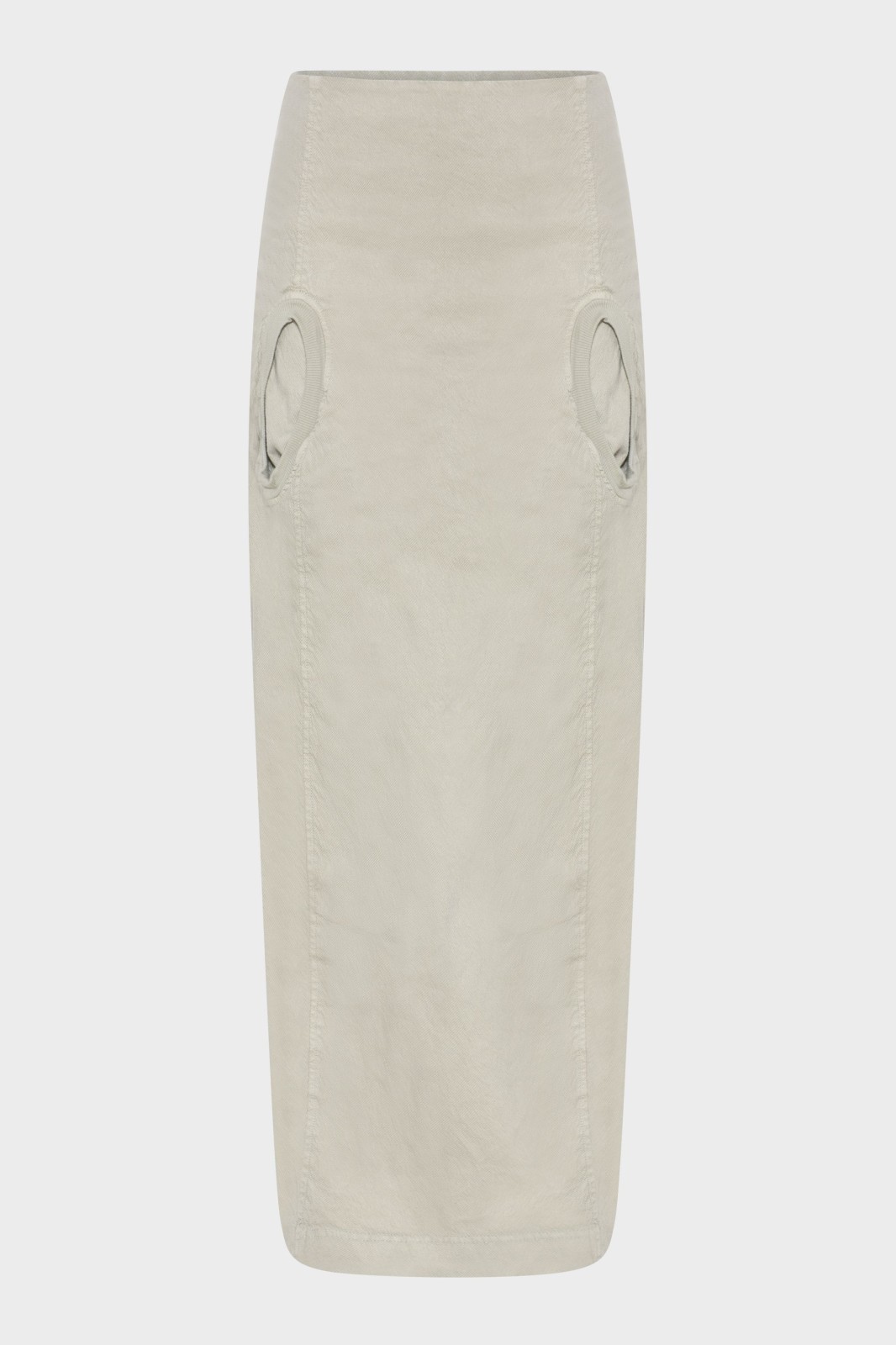 • Nederdelen har en slank silhuet, der smyger sig omkring benene.