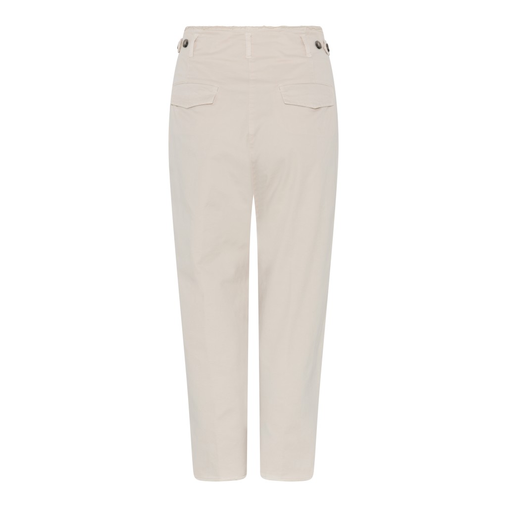 • Taljen kan reguleres med to knapper, og buksen har rå kanter ved talje og forneden.