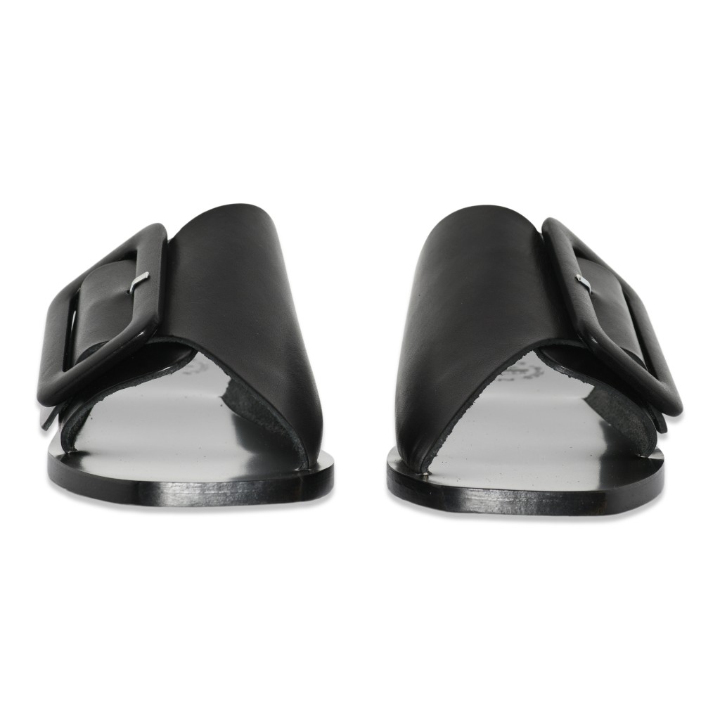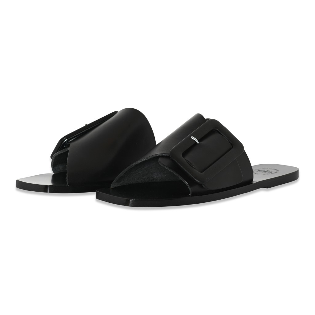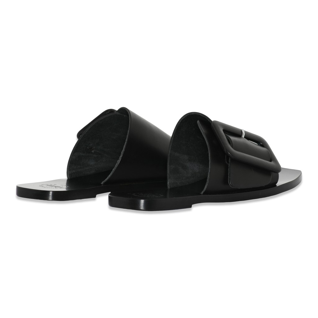 Denne elegante sorte sandal fra ATP er designet med en tidløs femininitet, der gør den perfekt til både hverdagsbrug og særlige lejligheder. Den klassiske udformning med et stort læderbetrukket spænde på vristen tilføjer et stilfuldt touch, mens den meget lille hæl sikrer komfort hele dagen.