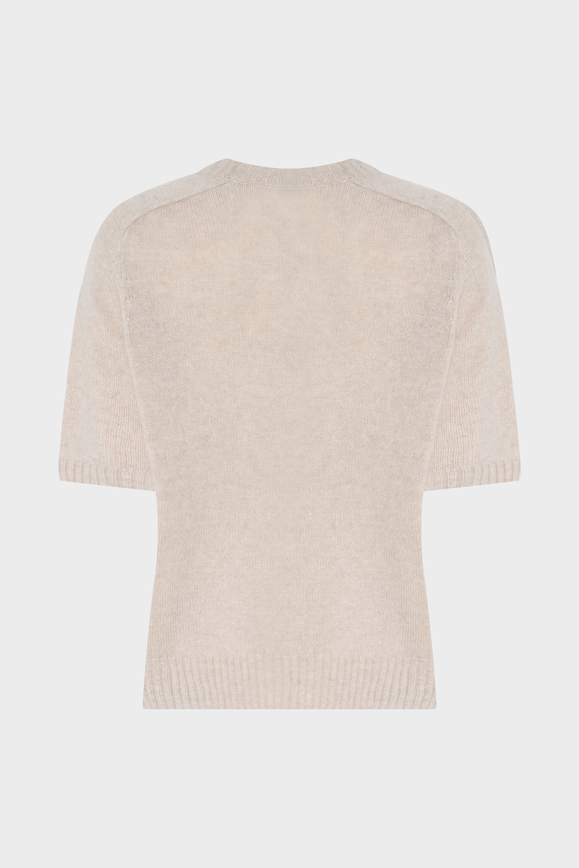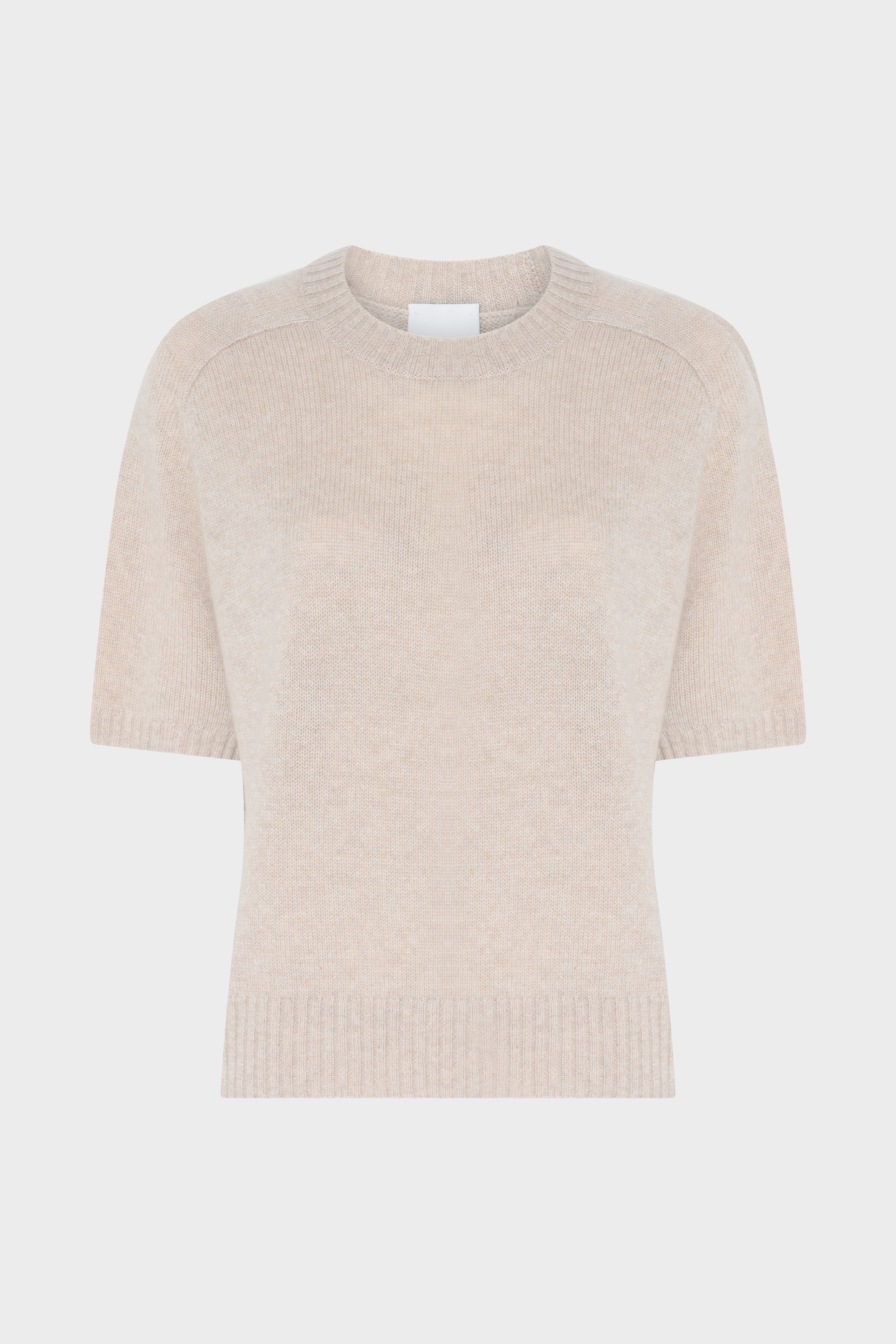 ALLUDE CASHMERE STRIK KORT ÆRME LYS TAUPE