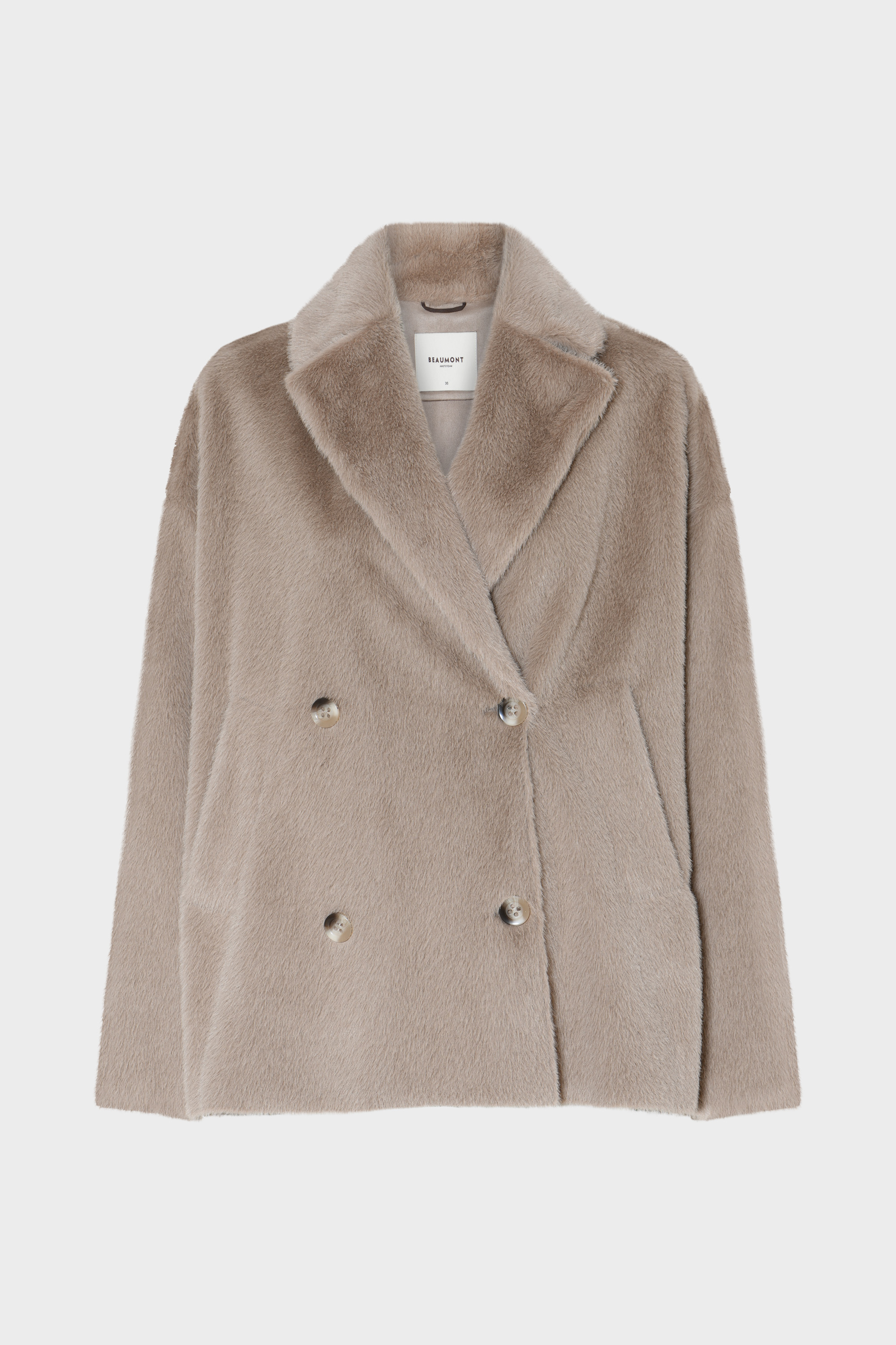 Opdag elegance og varme i en smuk langhåret "fake fur" jakke fra Beaumont, perfekt til de kølige dage. Denne jakke kombinerer klassisk stil med moderne bevidsthed om bæredygtighed og komfort.